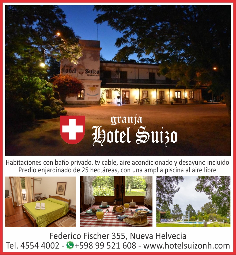 Conocida también como Colonia Suiza, está ubicada a 120 kilómetros de Montevideo. A fines de 1861 llegaron a esta zona las primeras oleadas migratorias de europeos, en su mayoría suizos. La colonia se fue consolidando y el trabajo agrícola se convirtió en una de sus principales bases de sustentamiento, en especial la fruticultura y la lechería. Actualmente es posible comprobar que, pese al paso del tiempo, Nueva Helvecia sigue siendo afín a las costumbres de sus antepasados y aún mantiene un fuerte vínculo social y cultural que la diferencia notoriamente del resto de Uruguay, más familiarizado con la sociedad española e italiana.
